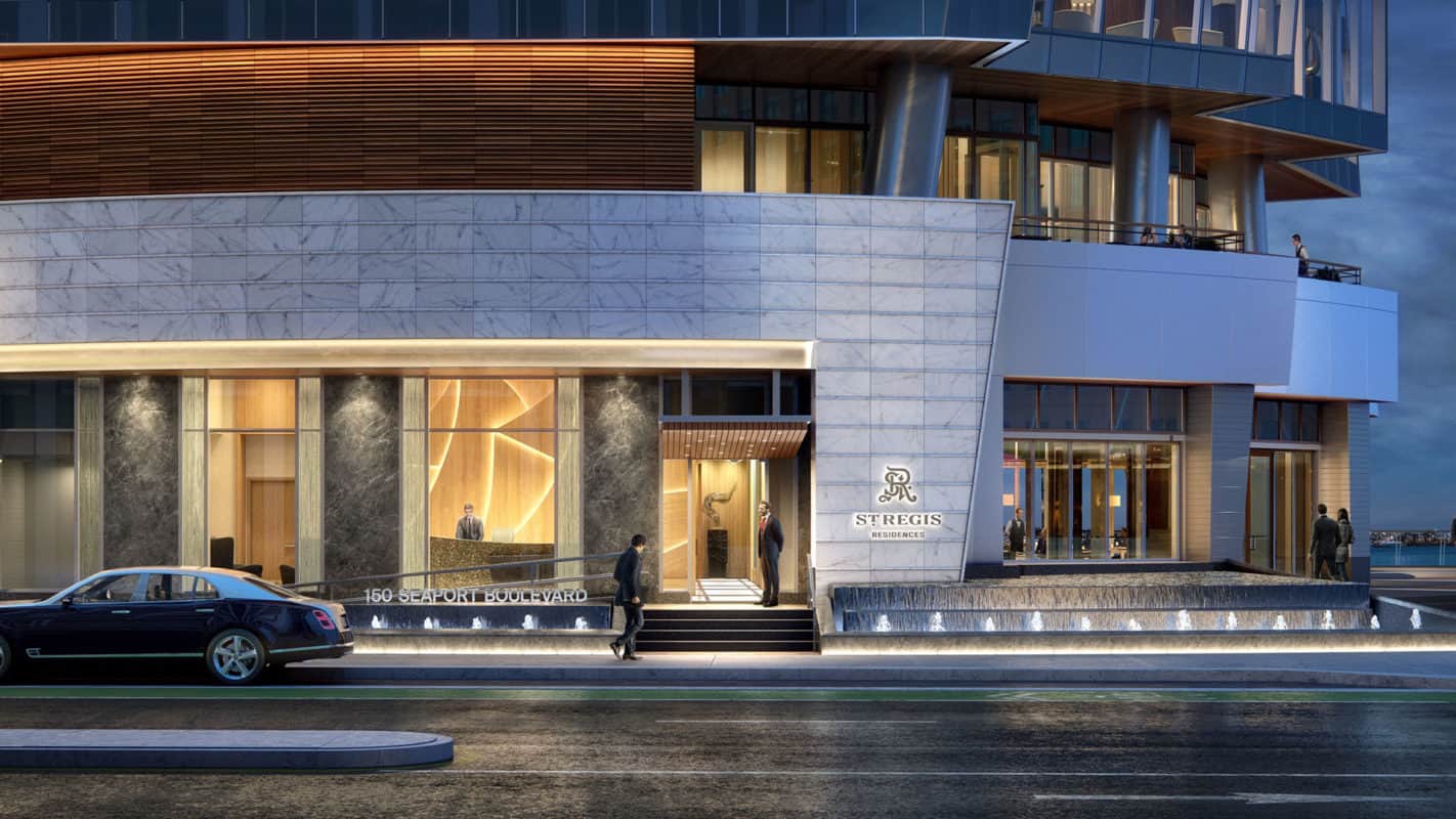 The St. Regis Residences located at 150 Seaport Blvd. in Boston's Seaport Neighborhood and promises to be one of the most luxurious, full service residential developments in all of Boston. Designed by Elkus Manfredi Architects and built by Cronin Development. The St. Regis Condominiums will sit directly on the water and will feature approximately 114 condominiums on 22 floors, Health Club, library, swimming pool and spa. Many units will feature private outdoor spaces, floor to ceiling windows, state of the art kitchens, top of the line bathrooms and hardwood flooring.